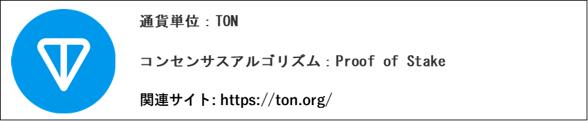 トンコイン(TON)はメッセージングアプリのTelegram が開発を始めたブロックチェーンプラットフォームですが、現在は「The Open Network」と名称を変更し、TONFoundation という非営利団体が開発・運営しています。トンコイン(TON)は、スケーラブルなクロスチェーン相互運用性を目指したブロックチェーンであり、様々な DApps(分散型アプリケーション)をサポートしています。また、Proof of Stake (PoS) のコンセンサスアルゴリズムを採用し、ネットワークの負荷をマスターチェーンと協調する複数のワークチェーンに分散させることで、超高速なトランザクション処理を実現しております。