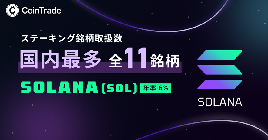 暗号資産運用サービス「CoinTradeStake(コイントレードステーク)」では、ソラナ(SOL)取り扱い開始により全11銘柄でステーキングサービスを提供することとなりました。