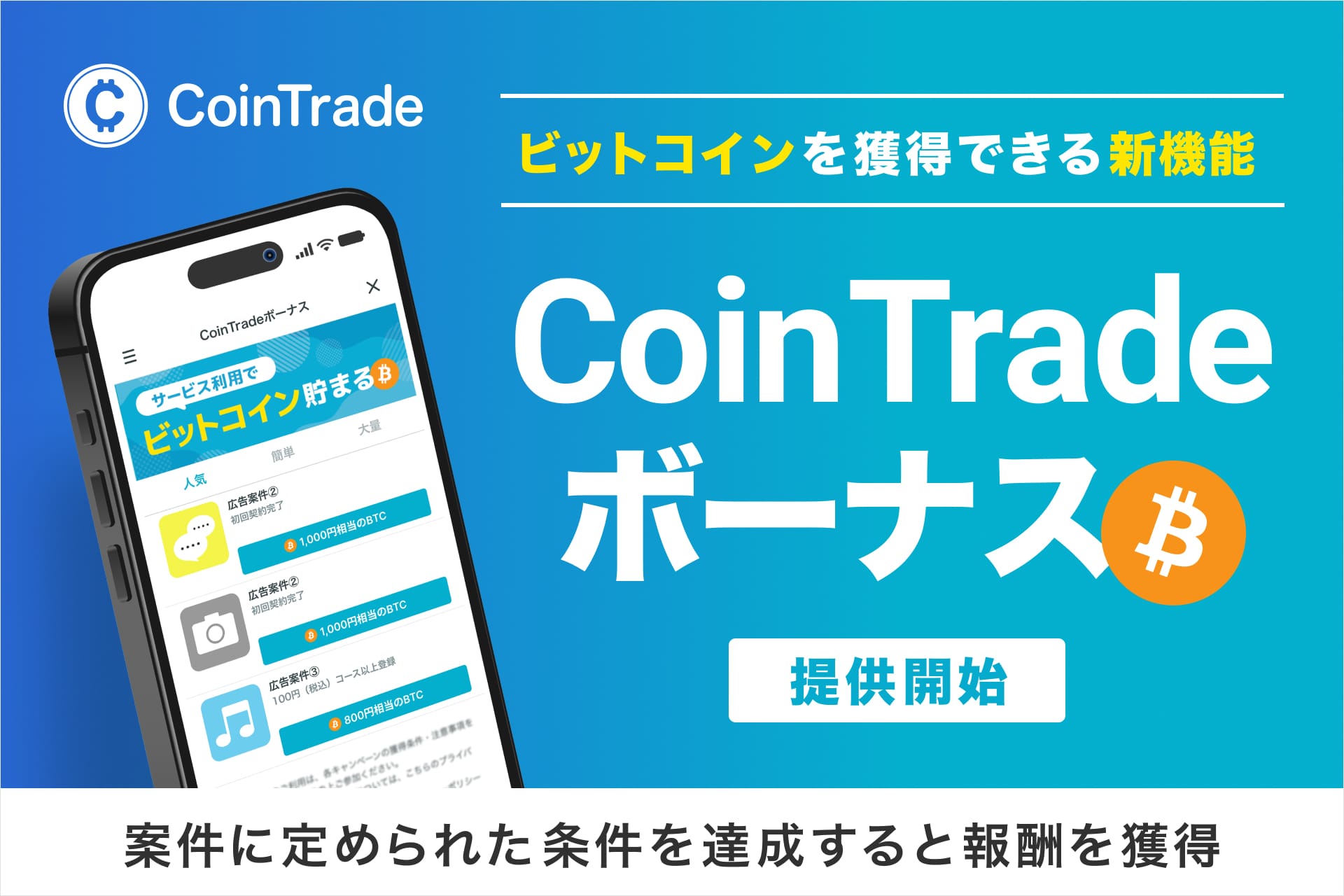 本日2026年2月4日(水)より所定の条件を達成することでビットコインを獲得できる新機能 「CoinTrade(コイントレード)ボーナス」 の提供を開始することをお知らせいたします。