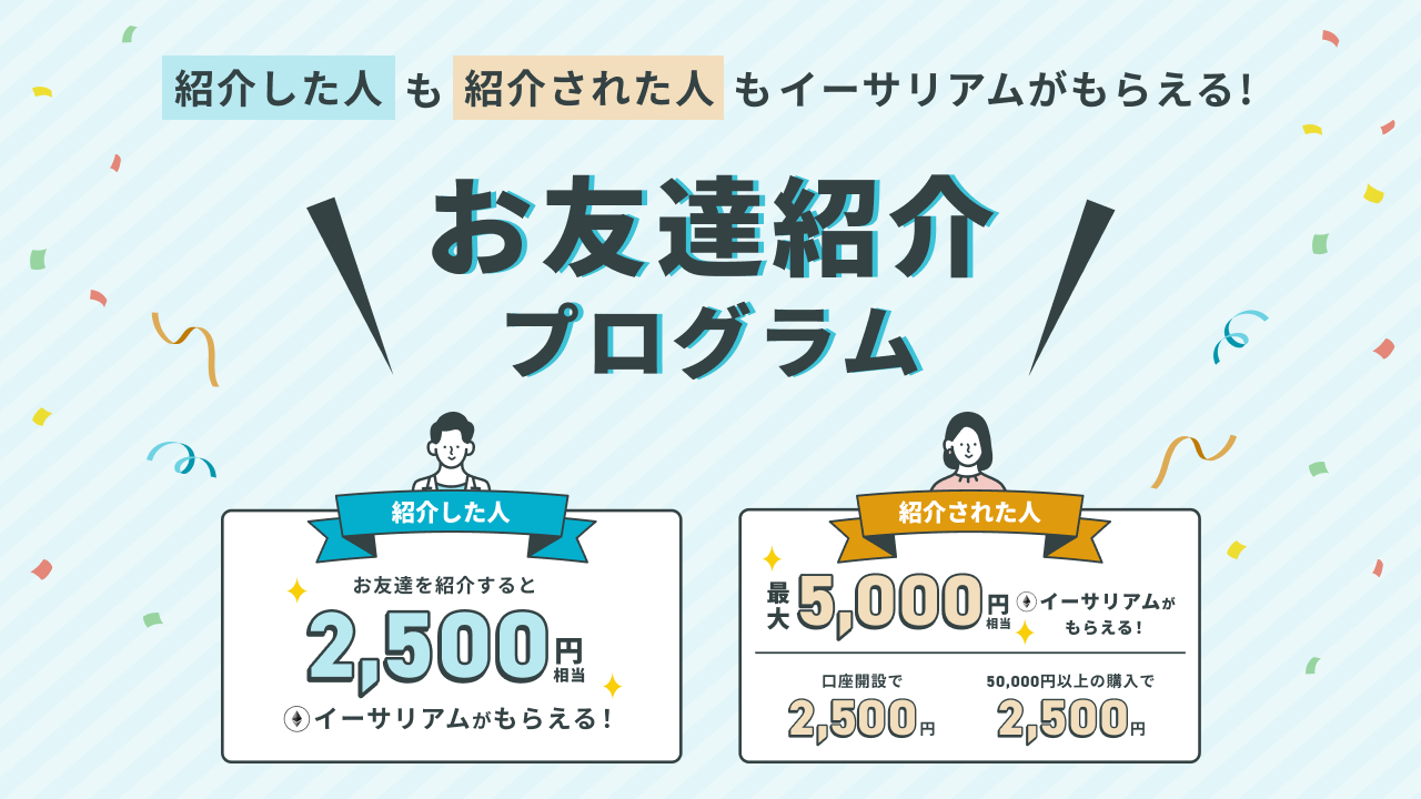 ※毎月のエントリー必須 - 紹介された人:最大5,000円相当のETH(イーサリアム)